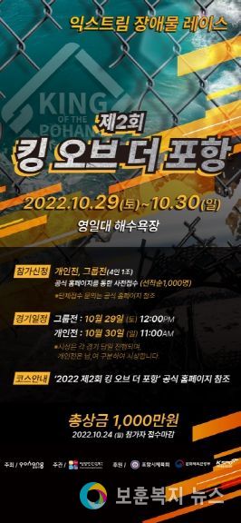보훈복지뉴스 유서진 기자 | 포항시와 포항영일만관광특구협의회는 오는 29일, 30일 양일간 극한의 해변스포츠로 포항의 최강자를 가리는 ‘2022 제2회 킹 오브 더 포항’ 대회를 개최한다.