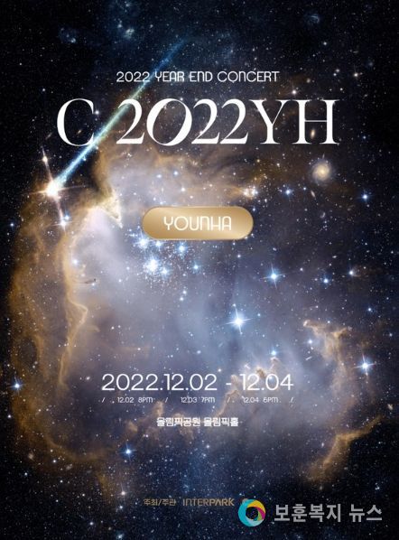 한편 '2022 윤하 연말 콘서트 〈c/2022YH〉'는 12월 2일 오후 8시, 3일 오후 7시, 4일 오후 6시 올림픽공원 올림픽홀에서 개최된다.