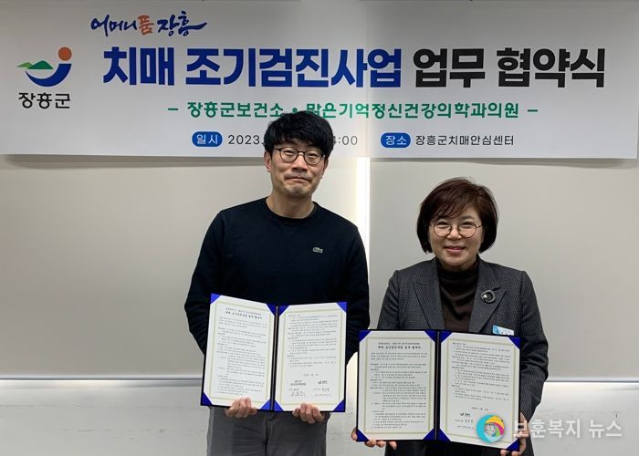 보훈복지뉴스 유서진 기자 | 장흥군은 17일 치매조기검진사업의 효율적인 시행을 위해 맑은기억정신건강의학과의원과 업무협약을 체결했다고 밝혔다.