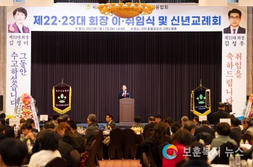 보훈복지뉴스 유서진 기자 | (사)중소기업융합 대구경북연합회 구미융합회는 1. 17 18시 호텔금오산 그랜드볼룸에서 김장호 구미시장, 구자근 · 김영식 국회의원, 김경미 이임회장, 김성우 취임회장, 관내 유관 기관단체장, 회원사 대표 등 60여명이 참석한 가운데 제22·23대 회장 이·취임식을 개최했다.