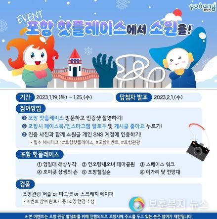 보훈복지뉴스 유서진 기자 | 포항시는 민족 고유의 설 명절을 맞아 19일부터 25일까지 포항 관광지 소원 성취 SNS 이벤트를 진행한다고 밝혔다.