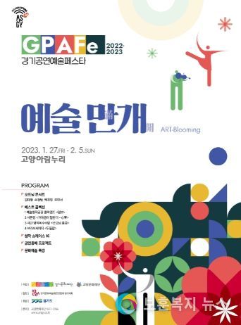 보훈복지뉴스 유서진 기자 | 경기문화재단(대표이사 유인택)은 고양문화재단(이사장 이동환)과 함께 제9회 경기공연예술페스타(G-PAFe 2022-2023) “예술 만개”(이하 “경기공연예술페스타”)를 오는 1월 27일부터 2월 5일까지 고양아람누리에서 개최한다.