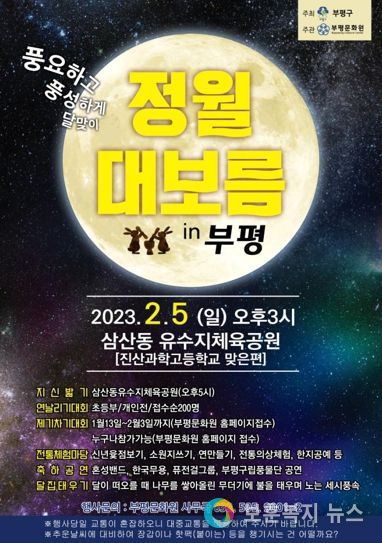 보훈복지뉴스 유서진 기자 | 부평구 부평문화원이 오는 2월 5일 삼산유수지체육공원에서 ‘정월대보름 in 부평’ 행사를 진행한다.