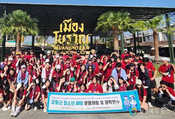 ‘강화군 청소년 해외문화체험 및 어학연수단’은 8일 출국해 오는 28일까지 3주간 공식일정을 소화하고 있다. 이번 연수단은 관내 중‧고등학교 80명 규모로 태국 방콕의 은혜국제학교에서 원어민 교사들의 지도 아래 어학연수 및 문화체험에 참여하게 된다. 이번 어학연수 대상자로 선정된 학생들은 강화읍에 소재한 중·고등학교에서 추천을 받은 학생들로 군은 교육비 및 경비 90%를 지원했다.