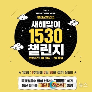 보건소 담당자는 “건강을 새해 계획으로 삼은 군민에게 좋은 기회가 될 것”이라며 “설 명절 후 시작되는 이번 챌린지에 많은 참여를 바란다”고 말했다.