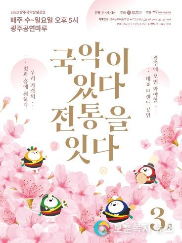 보훈복지뉴스 유서진 기자 | 광주문화예술회관은 꽃피는 춘(春) 3월을 맞아 봄의 정취를 느낄 수 있는 국악상설공연으로 프로그램을 구성했다고 밝혔다.