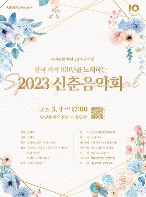 보훈복지뉴스 유서진 기자 | 당진문화재단은 10주년을 맞이하여, 한국 가곡 100년을 노래하는 '2023 신춘음악회'를 공연한다.