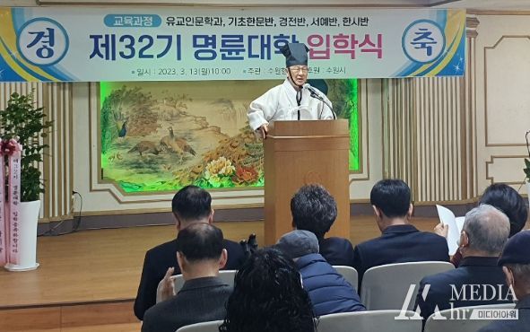미디어아워 최지은 기자 | 수원향교는 13일 팔달구 수원향교 유림회관에서 제32기 명륜대학 입학식을 열었다.