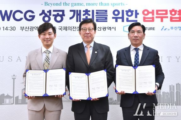 부산시는 오늘(29일) 오후 2시 30분 시청 7층 국제의전실에서 WCG 2023 부산 개최를 공식화하고, 대회의 원활한 추진을 위해 ㈜빅픽처인터렉티브 및 (재)부산정보산업진흥원과 ‘2023년 월드사이버게임즈(WCG) 성공개최를 위한 업무협약’을 체결한다.