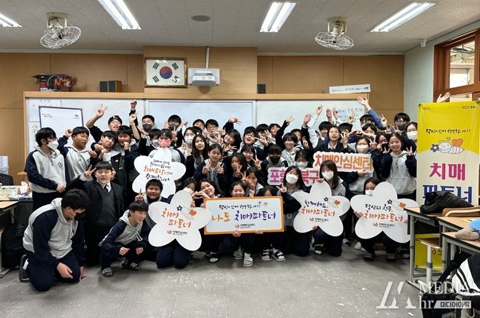 미디어아워 이호민 기자 | 포항시 북구보건소 치매안심센터는 7일 포항 청하중학교 신입생 52명을 대상으로 치매 파트너 교육을 실시했다.