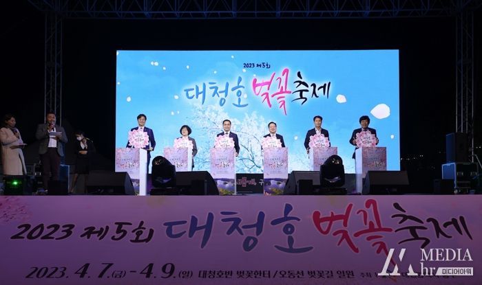 미디어아워 이호민 기자 | 이장우 대전시장은 7일 저녁 대청호반 벚꽃한터에서 열린 ‘제5회 대청호 벚꽃축제’개막식에 참석하고 시민들과 함께 대청호 벚꽃축제 개막을 축하했다.