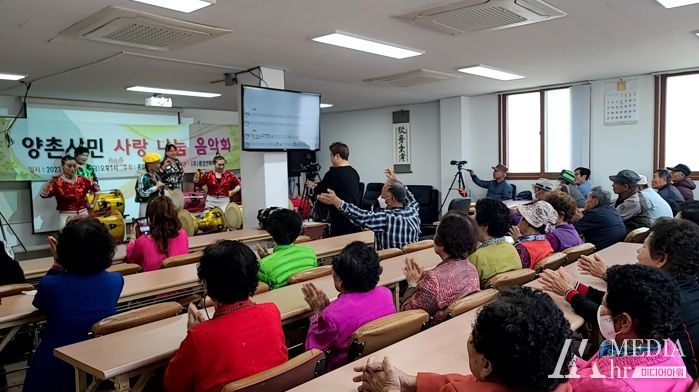 미디어아워 이호민 기자 | 지난 7일 오후 논산시 양촌면 분회에서 열린 ‘양촌면민을 위한 사랑의 나눔 음악회’가 지역 어르신들의 기분 좋은 웃음과 박수 속에 마무리됐다.