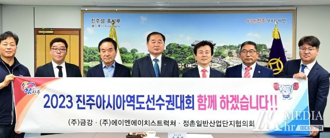 미디어아워 박미영 기자 | 진주시는 18일 시청 기업인의 방에서 진주시 기업인 및 기업단체와 ‘2023 진주아시아역도선수권대회’ 성공 개최 기원 후원금 전달식을 가졌다.
