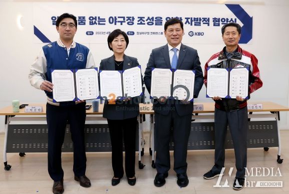 미디어아워 최태문 기자 | KBO(총재 허구연)와 10개 구단은 18일(화) 한국프로야구의 지속가능한 발전 및 ESG 경영의 일환으로 환경부와 ‘일회용품 없는 야구장 조성을 위한 자발적 협약’을 체결했다.