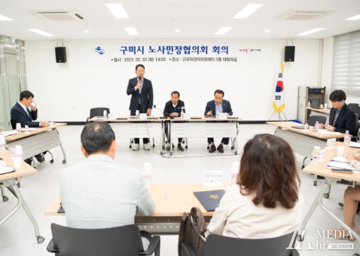 미디어아워 최지나 기자 | 구미시는 2일 근로자권익지원센터에서 노사민정 각 분야를 대표하는 위원 16명이 참석한 가운데 노사민정협의회를 열었다.