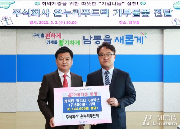 미디어아워 최지나 기자 | 인천시 남동구는 최근 ㈜온누리푸드텍으로부터 어린이날을 맞아 지역 내 지역아동센터 학생들을 위한 캐릭터 달고나 7,680개를 전달받았다고 4일 밝혔다.