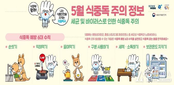 더하여 식중독 예방 6대 수칙인 ▲손씻기 ▲ 익혀먹기▲끓여먹기 ▲구분 사용하기▲세척·소독하기 ▲보관온도 지키기 실천을 통해 식중독을 예방할 수 있다.