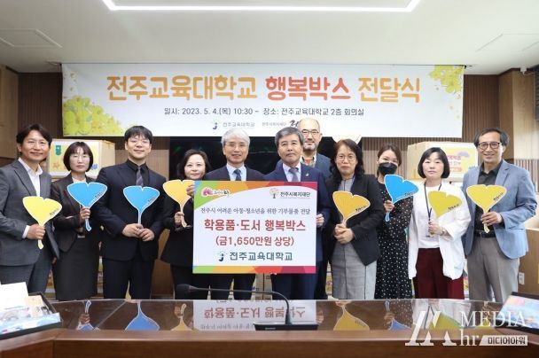전주교육대학교는 4일 전주시복지재단(이사장 윤방섭)에 취약계층 아동·청소년을 위한 1650만 원 상당의 행복박스 등 후원 물품을 전달했다.