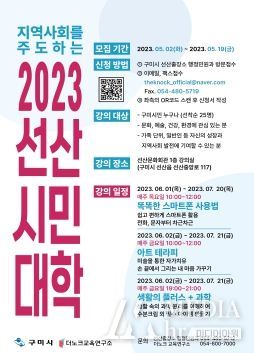 미디어아워 김성연 기자 | 구미시는 5. 2 ~ 5. 19일까지 2023년 상반기 선산시민대학 수강생을 모집한다.