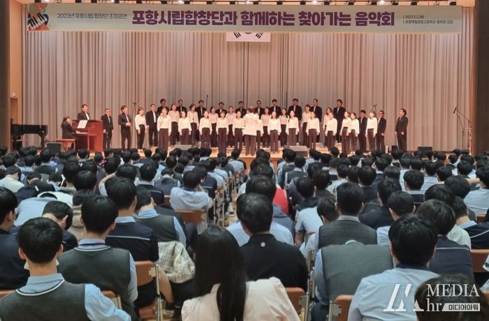 미디어아워 이호민 기자 | 포항시립합창단이 지난달 4월 26일 진행한 그린웨이 찾아가는 버스킹에 이어 지난 2일 포항제철공업고등학교에서 찾아가는 사제동행 음악회를 개최해 성황리에 마쳤다.