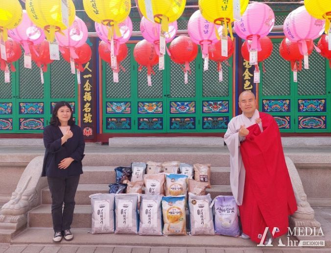 미디어아워 진금하 기자 | 수원시 영통1동 소재 영통사는 지난 4일, 백미 17포를 영통1동 행정복지센터에 기부했다.