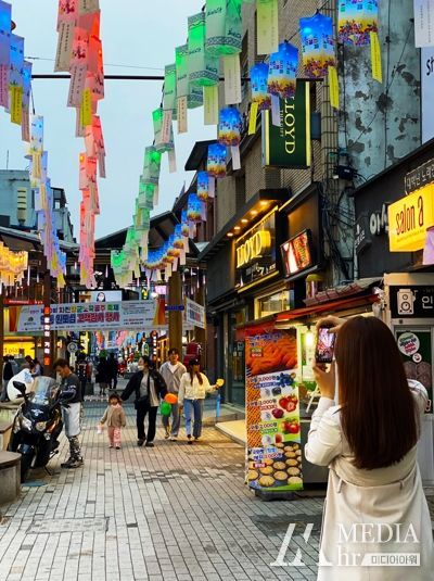 미디어아워 조연정 기자 | 안동 문화광장길 하늘 위로 오색빛깔의 소원등이 환하게 빛나며 새로운 야간 명소로 등극하고 있다.