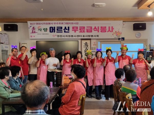 12년째 이어지고 있는 효사랑봉사회의 급식 봉사는 매달 첫째, 셋째 토요일이면 어르신들께 점심을 드리며 난타, 색소폰, 타령 등 각종 소공연까지 선보이며 즐거움을 선사하고 있다. 2023년에는 (사)영천시자원봉사센터의 자원봉사 우수프로그램으로도 선정됐다.