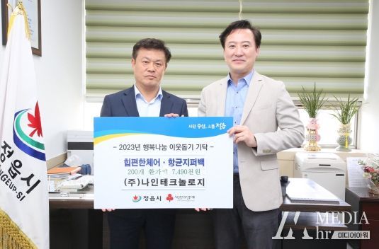 미디어아워 김성연 기자 | (주)나인테크놀로지가 제101회 어린이날을 기념하여 정읍시 저소득가정 어린이에게 전달해 달라며 7,490천원 상당의 어린이용 힙편한체어(105개)와 항균지퍼백(104개)을 정읍시에 기탁했다.