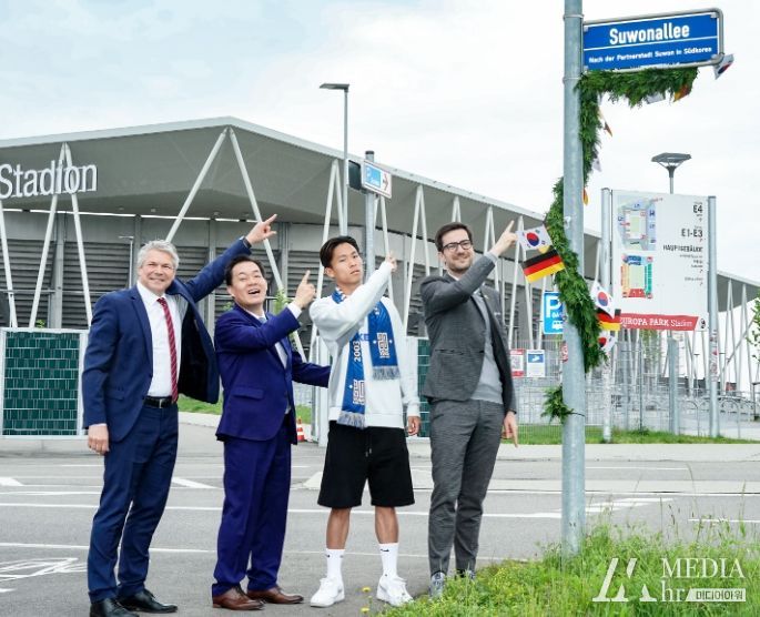 마르틴 호른 시장은 “유로파파크 슈타디온과 수원가로수길이 있는 이곳은 프라이부르크의 심장과 같은 곳”이라며 “유로파파크 슈타디온을 새로 지으면서 두 개의 길이 생겼는데, 수원시와 자매도시결연을 기념하기 위해 그중 하나를 수원가로수길이라고 이름을 붙였다”고 설명했다.
