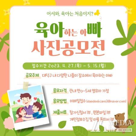 미디어아워 조연정 기자 | 대전 대덕구와 대덕구육아종합지원센터가 5월 가정의 달을 맞이해 육아하는 아빠 사진 공모전을 개최한다.