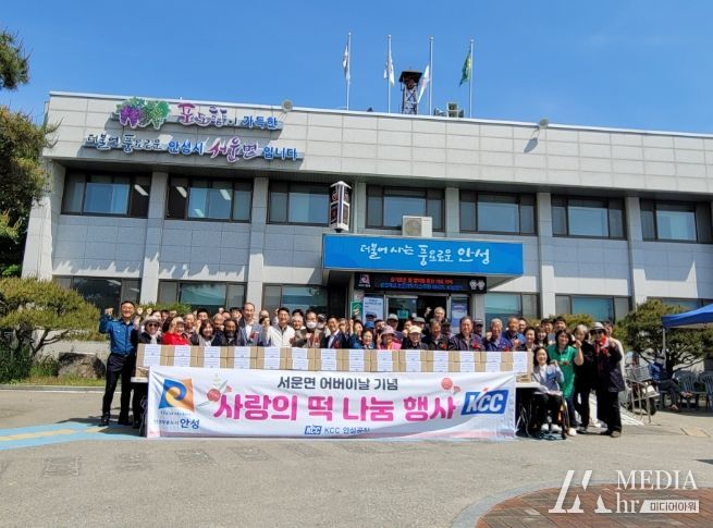 미디어아워 진금하 기자 | 안성시 서운면 소재 KCC 안성공장 임직원은 지난 8일 어버이날을 맞이하여 떡과 식혜 120박스를 서운면 노인회에 전달하고 어르신들을 위한 사랑의 점심 제공 행사를 함께 진행했다.