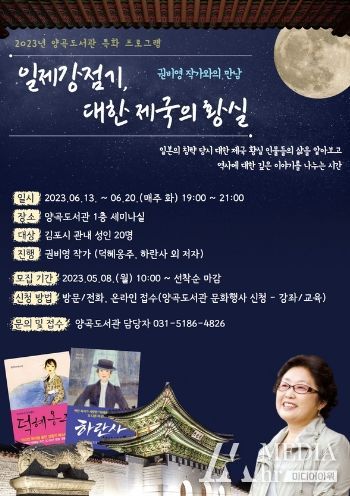 미디어아워 박미영 기자 | 김포시립 양곡도서관은 호국보훈의 달인 6월을 맞아 6월 13일부터 20일까지 매주 목요일 오후 7시 도서관 1층 세미나실에서 도서관 특화 프로그램 ‘일제강점기, 대한 제국의 황실’을 운영한다.