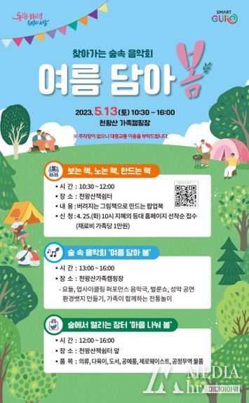 미디어아워 조연정 기자 | 구로구가 13일에 천왕산 가족캠핑장 일대에서 찾아가는 숲속 음악회 ‘여름 담아 봄’을 개최한다.