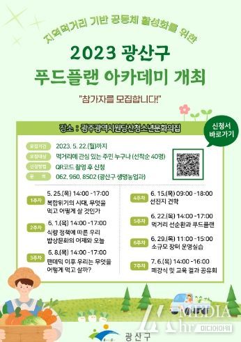 미디어아워 조연정 기자 | 광주 광산구는 22일까지 ‘푸드플랜 아카데미’ 참가자를 모집한다고 밝혔다.