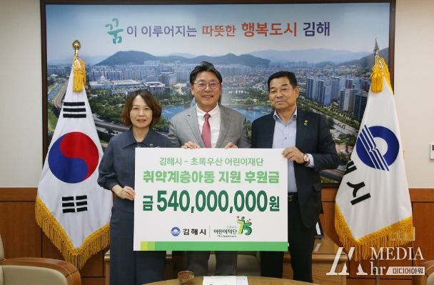 미디어아워 박미영 기자 | 김해시는 10일 오후 3시 시장실에서 초록우산어린이재단 경남지역본부와 김해 취약계층 아동 지원을 위한 후원금 약정식을 개최했다.