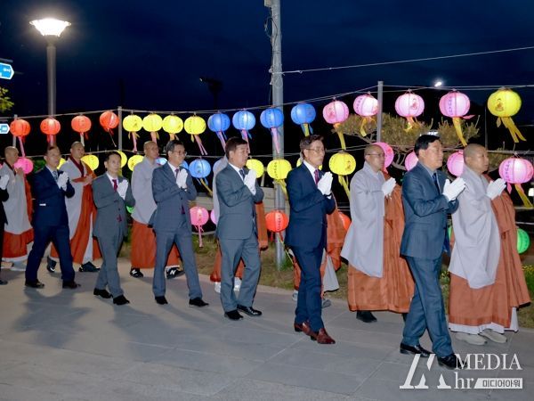 합천군불교연합회회장 진각스님은 봉축점등사를 통해 “군민 한분 한분이 각자의 위치에서 맡은바 소임을 다 해주셔서 감사하며, 모든 군민의 행복, 번영과 화합을 두손모아 기원한다”고 말했다.