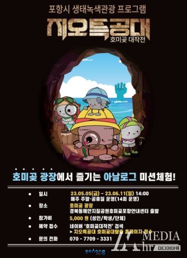 ‘지오특공대 호미곶 대작전’은 특별한 지질자원인 호미곶 해안단구(바다 계단)를 무대로 생태계 균형을 지키기 위해 돌의 정령과 함께 ‘지오특공대’를 꾸려 호미곶 지질을 조사하는 특공대 단원이 된다는 컨셉으로 진행되며, 미션을 해결하며 생태·해양관광의 중요성을 배우는 아날로그 체험이다.