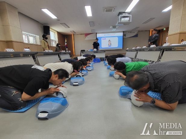이날 교육은 안전의식과 더불어 위급상황 시 초기 대응 능력을 향상시키기 위해 마련된 것으로, 심폐소생술 관련 영상자료 시청 후 응급처치 요령, 심폐소생술 시범과 실습, 자동제세동기 사용법 안내 순으로 진행됐다.