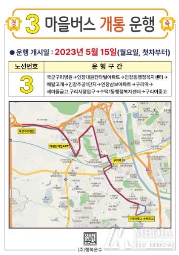 미디어아워 박미영 기자 | 구리시는 오는 5월 15일부터 마을버스 3번 노선을 신설하고 운행을 개시한다고 밝혔다.