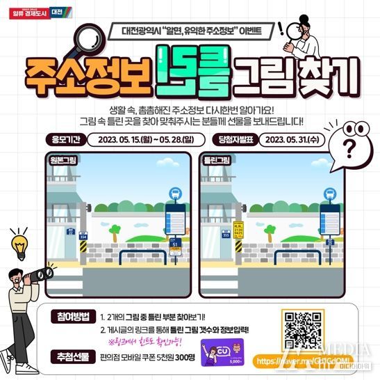미디어아워 이호민 기자 | 대전시는 전 국민을 대상으로 알면 유익한 주소정보를 알리기 위해 15일부터 28일까지 주소정보 틀린그림찾기 이벤트를 진행한다고 밝혔다.