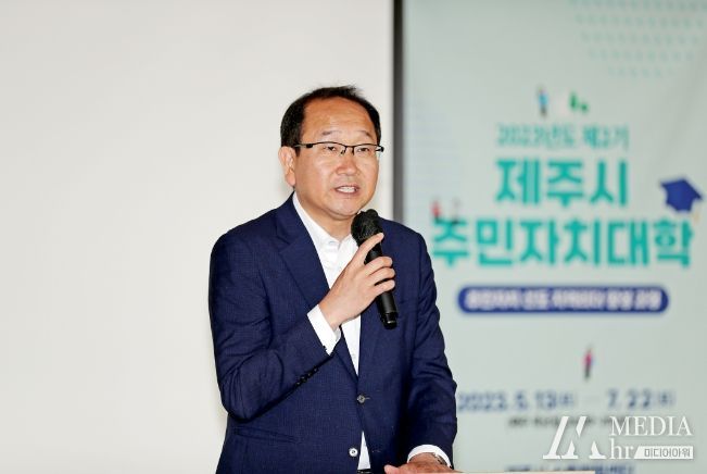 미디어아워 박미영 기자 | 강병삼 제주시장은 5월 13일 제주시소통협력센터에서 열린‘2023년 제2기 제주시 주민자치대학 입학식에 참석해 관계자들을 격려하고 축하를 전했다.