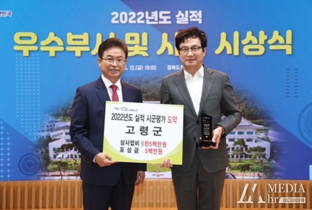 미디어아워 박미영 기자 | 고령군은 지난 12일 경북도청에서 열린 ‘2023년 시군평가 시상식’에서 도약상을 수상하여 상사업비 5천5백만원을 확보했다.