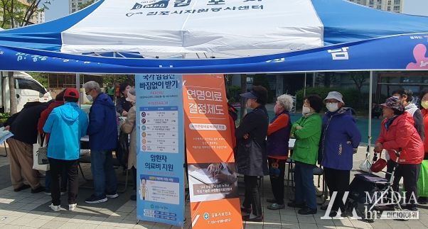 미디어아워 박미영 기자 | 김포시보건소는 지난 12일 한국자원봉사센터협회와 IBK기업은행 후원으로 통진읍마송공영주차장에서 김포시자원봉사센터가 운영한 ‘2023 김포시 참! 좋은 사랑의 밥차’ 행사에 참석해 사전연명 결정제도 등 시민홍보부스를 운영했다.