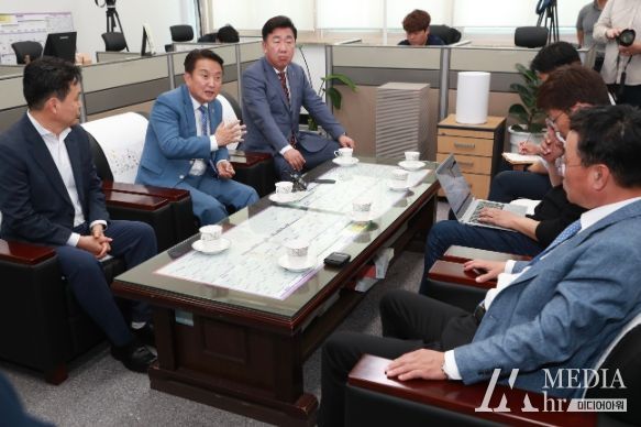 이날 김영환 도지사는 먼저 청주 무심천 인근을 현장 방문하여 무심천 친수공간 조성현황, 무심천 자전거도로․산책로 이원사업, 무심천과 미호강 통합하천사업 추진현황 등을 보고 받으며 시민들의 삶의 질 향상을 위한 다양한 사업의 필요성에 대하여 청취했다.