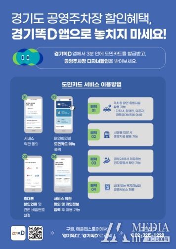 미디어아워 박미영 기자 | 공공 마이데이터를 활용한 맞춤형 행정서비스 앱 ‘경기똑D’의 도민카드 사용처가 기존 83개소에서 공영주차장 513개소가 추가된 총 596개 공공시설로 17일부터 확대된다.
