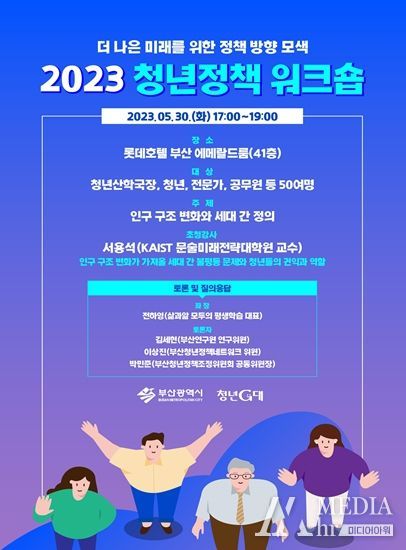 미디어아워 박미영 기자 | 부산시는 청년의 정책 참여를 확대하고 청년의 목소리를 정책에 적극적으로 반영하기 위해 오는 5월 30일 오후 5시 롯데호텔 부산 에메랄드룸에서 '2023 청년정책 워크숍'을 개최한다고 밝혔다.