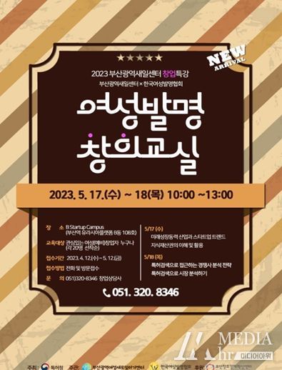 미디어아워 박미영 기자 | 부산시 여성문화회관(부산광역여성새로일하기센터)은 내일(17일)과 18일 양일간 오전 10시부터 오후 1시까지 부산유라시아플랫폼에서 '2023 여성발명창의교실'을 운영한다고 밝혔다.