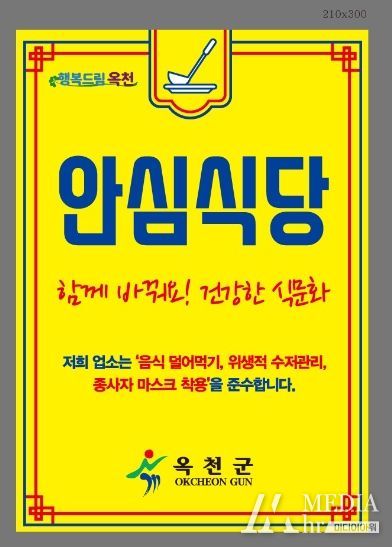 미디어아워 조연정 기자 | 충북 옥천군은 지난해에 이어 관내 일반음식점을 대상으로 안심식당을 추가 지정했다고 16일 밝혔다.