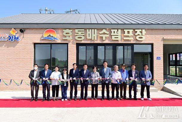 미디어아워 박미영 기자 | 김천시는 5월 15일 농소면 신촌리 호동배수펌프장에서 지역구 시의원, 수혜주민들이 참석한 가운데 호동지구 배수개선사업 준공식을 개최했다.