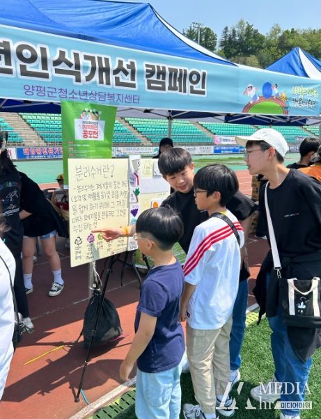 미디어아워 진금하 기자 | 양평군 청소년회는 지난 13일, 물맑은양평종합운동장에서 개최된 2023년 제1회 양평 청소년 운동회에서 환경에 대한 인식개선 캠페인을 실시했다.